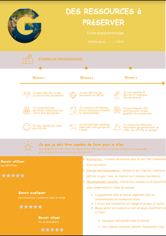 La partie « Ce que je dois savoir faire pour le bilan » avec les petites étoiles avait l’avantage d’indiquer à l’élève où il en était lorsque nous faisons des évaluations formatives (grâce aux Plickers!)